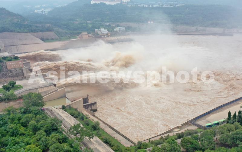 2020年8月22日,携带大量泥沙的混浊水流从黄河小浪底水库排沙洞奔腾而出。为全力应对持续发展的洪水,黄河水利委员会决定结合拦洪削峰、水库排沙、河道冲淤等综合需要,实施中下游水沙联合调度,自8月20日12时起,调度小浪底水库开启3条排沙洞、1条孔板洞,加上机组发电,按4000立方米每秒均匀下泄,泄流过程不少于6天。