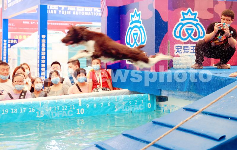 2020年8月23日,一场宠物犬趣味跳水游泳大赛亮相在上海新国际博览中心举办的第23届亚洲宠物展。