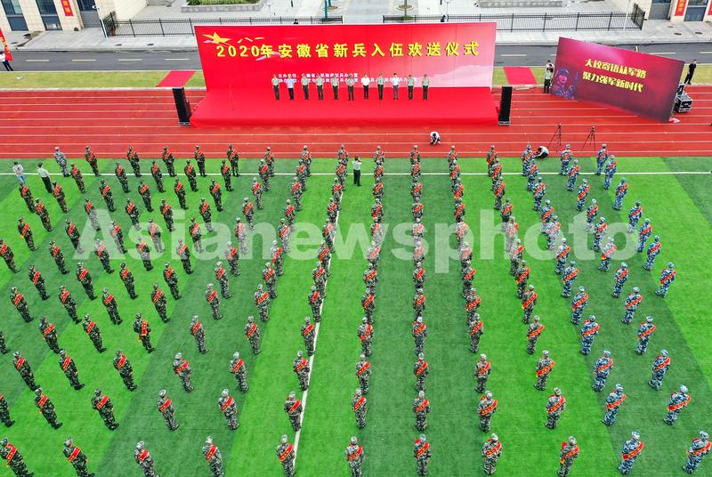 图片说明:2020年9月15日,在安徽省合肥市肥东县人武部举行的新兵入伍欢送仪式上。