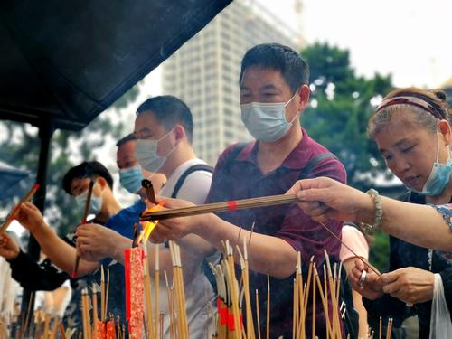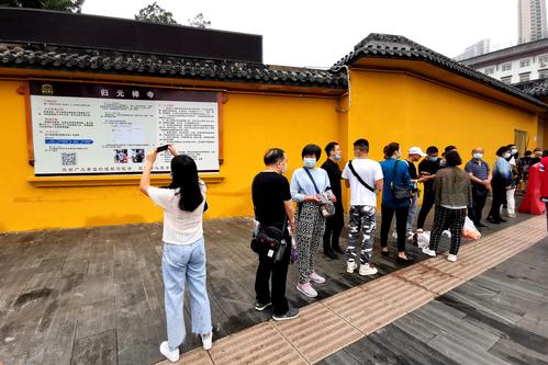 图片说明:2020年9月16日,武汉归元寺恢复开放,众多市民和游客前来参观。