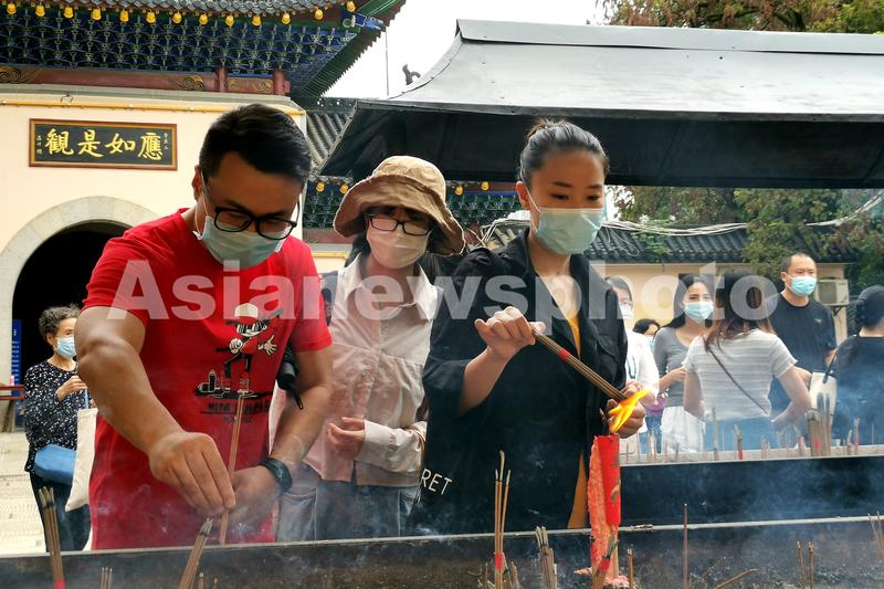 图片说明:2020年9月16日,武汉归元寺恢复开放,游客前来参观祈福。