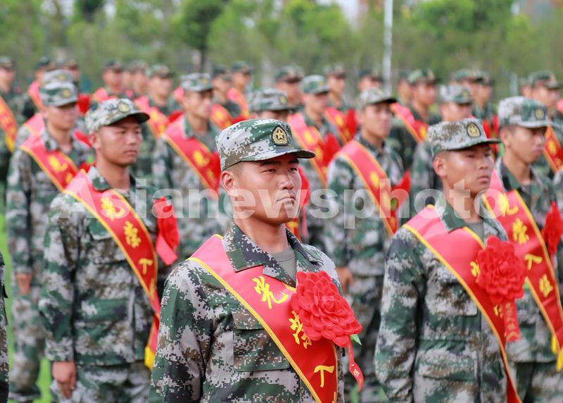 图片说明:2020年9月15日,在安徽省合肥市肥东县人武部举行的新兵入伍欢送仪式上。