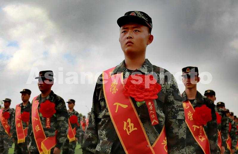 图片说明:2020年9月15日,在安徽省合肥市肥东县人武部举行的新兵入伍欢送仪式上。