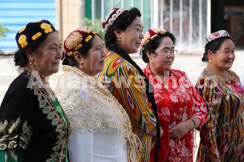 9月22日,新疆莎车县老城区喀赞其街,游客合影留念。