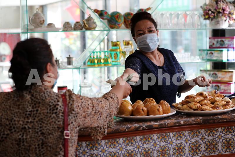 9月22日,新疆莎车县老城区喀赞其街,一名顾客在餐馆消费。