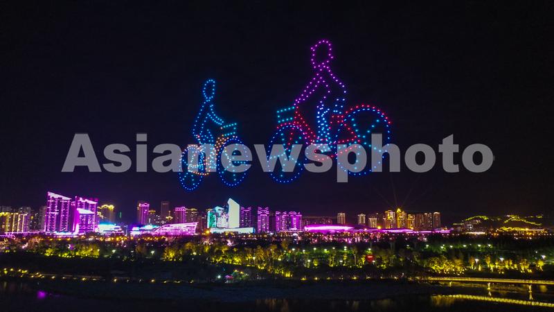 四川遂宁:城市夜空上演无人机灯光秀 查看组图