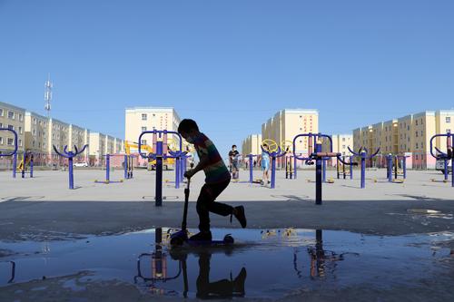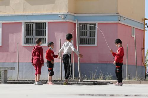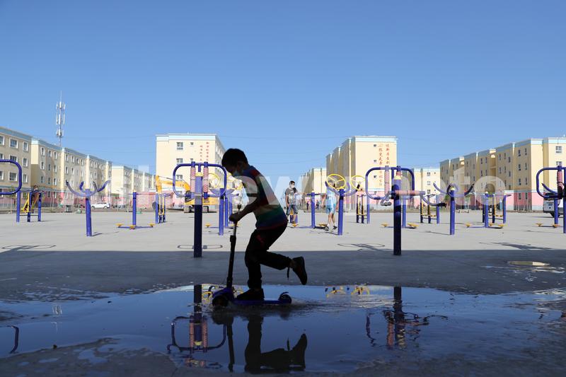 图片说明:9月20日,小朋友在“丝路佳苑”小区内玩耍。