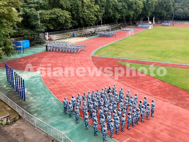 图片说明:2020年9月25日,武汉大学新生在参加军训。