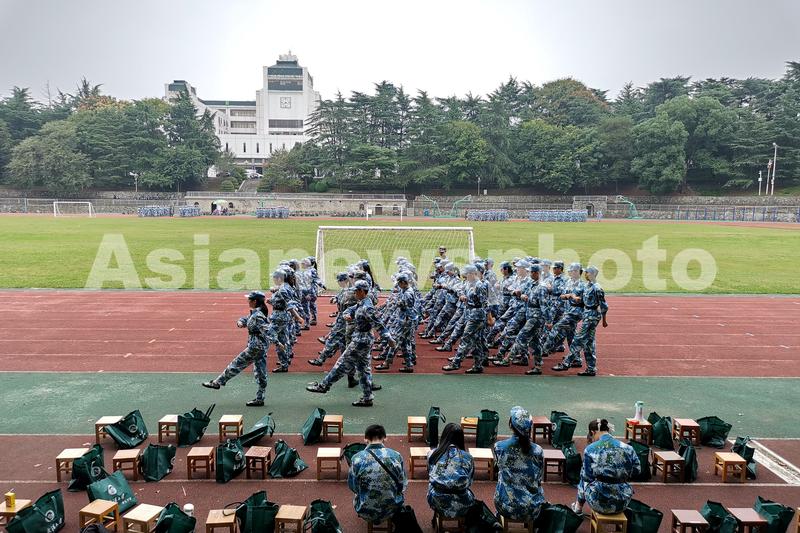 图片说明:2020年9月25日,武汉大学新生在参加军训。