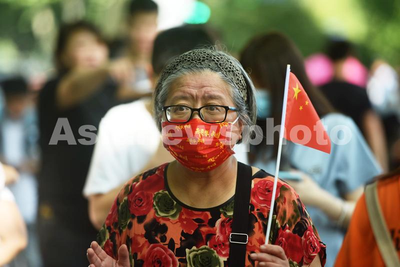 图片说明:2020年10月2日,一名戴着“我爱你中国”口罩的游客在杭州西湖边游览。