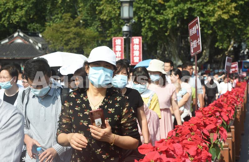 图片说明:2020年10月2日,杭州西湖断桥上游客人头攒动。