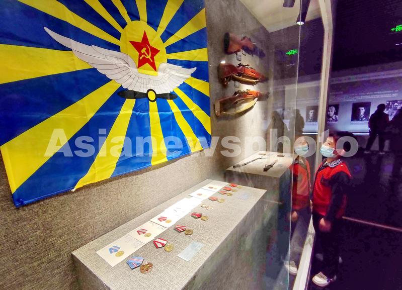 2020年10月6日,武汉,观众在全国首家“苏联空军志愿队陈列馆”参观。
