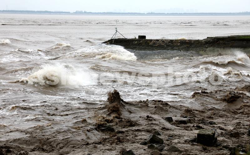 图片说明:2020年10月4日,农历八月十八钱江潮大潮汛,在浙江海宁丁桥大缺口钱塘江大潮滚滚而来。
