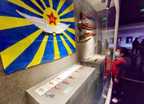 2020年10月6日,武汉,观众在全国首家“苏联空军志愿队陈列馆”参观。