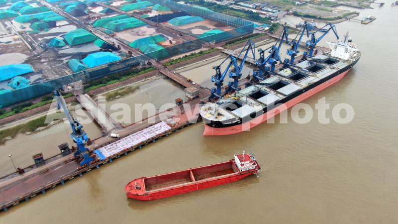 江苏如皋:8万吨铁矿石开普船靠泊 查看组图