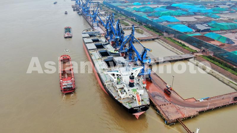 图片说明:2020年10月4日,装载81000吨铁矿石的开普船“特赫鲁女神”轮安全靠泊如皋港务集团泊位。
