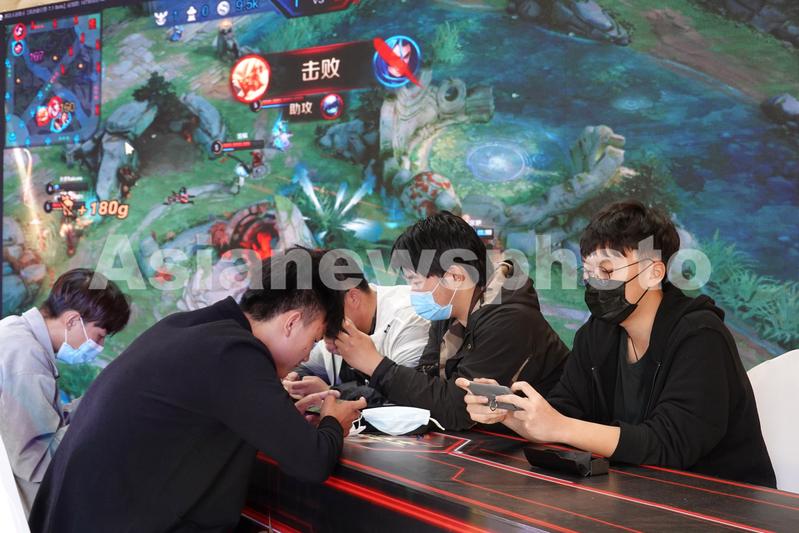 图片说明:2020年10月8日,在山东烟台大悦城,选手参加“王者荣耀线下赛”。