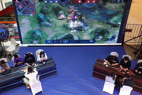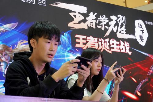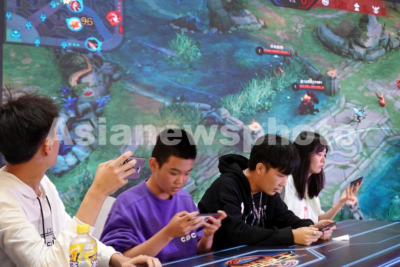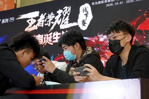 图片说明:2020年10月8日,在山东烟台大悦城,选手参加“王者荣耀线下赛”。