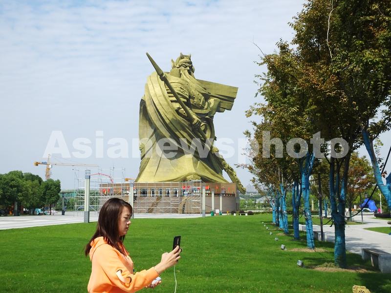 图片说明:2020年10月9日,在湖北荆州市关公义园拍摄的关公圣像。