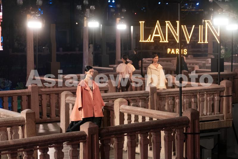图片说明:10月17日晚,LANVIN 2021春夏时装秀在上海豫园九曲桥上举行。