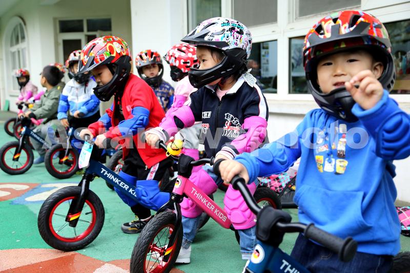 图片说明:10月16日,连云港核电钟声国际幼儿园的孩子在进行体育项目运动。