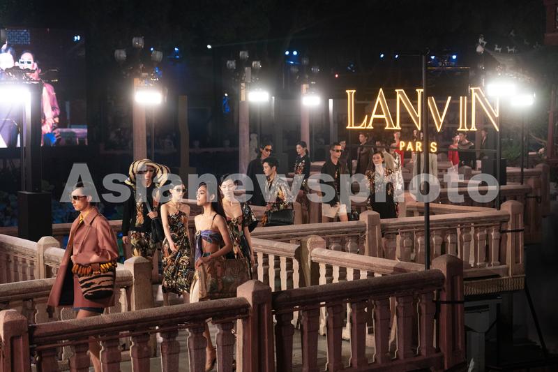 图片说明:10月17日晚,LANVIN 2021春夏时装秀在上海豫园九曲桥上举行。