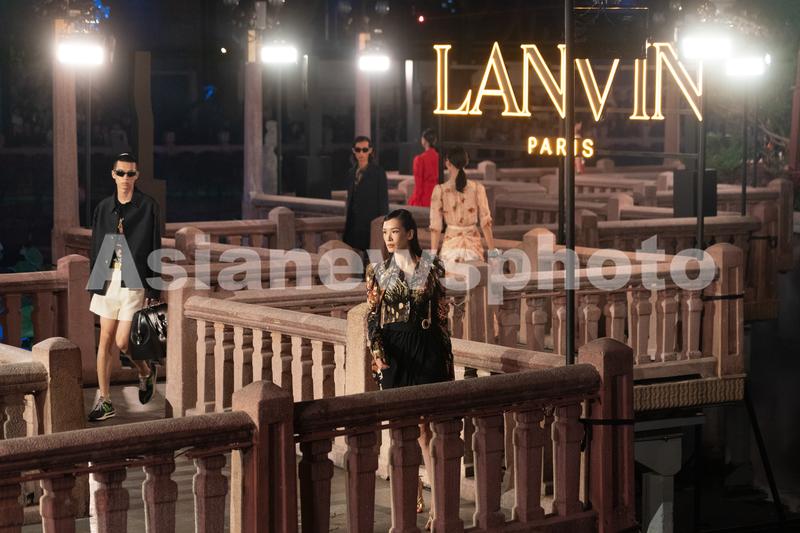 图片说明:10月17日晚,LANVIN 2021春夏时装秀在上海豫园九曲桥上举行。