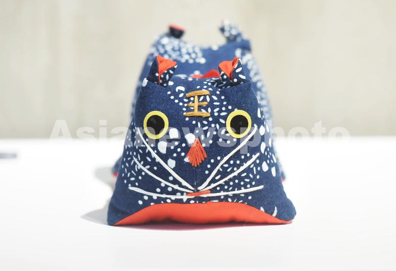2020年10月22日,在浙江纺织服装职业技术学院拍摄到的用蓝印花布制成的布老虎。