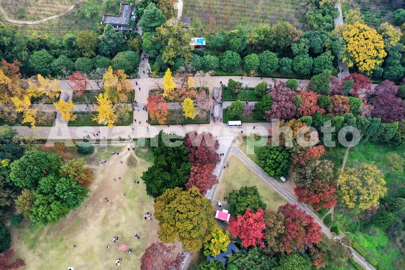 2020年11月1日,南京明孝陵石像路进入最佳秋色观赏季,吸引许多游人前来观赏。