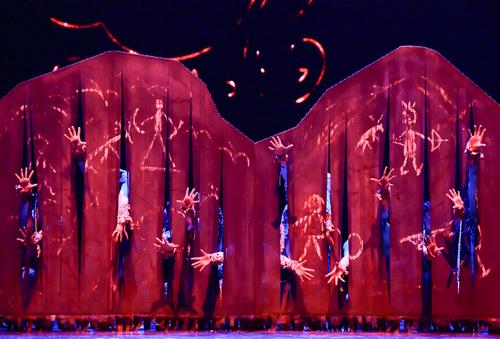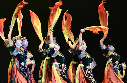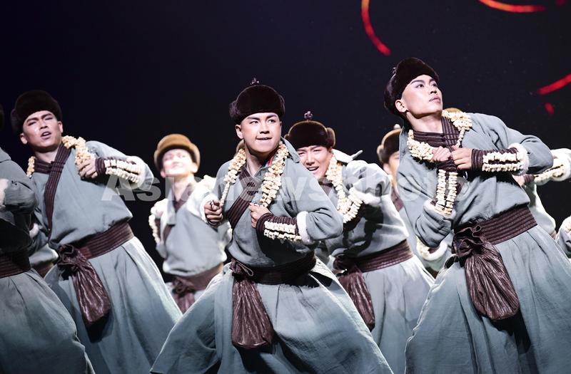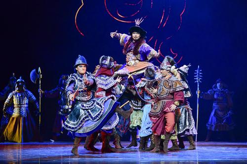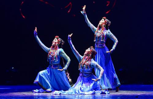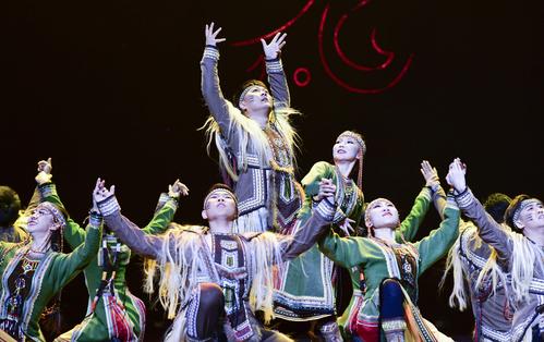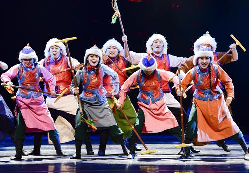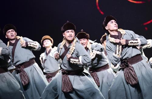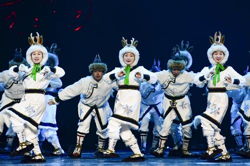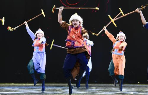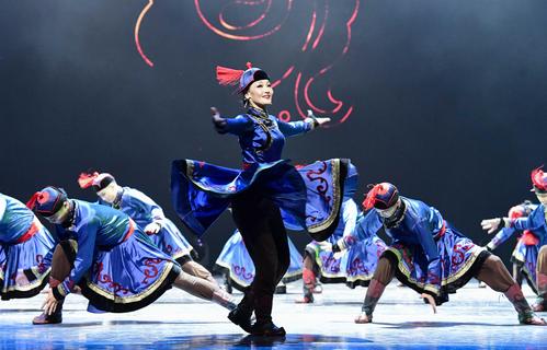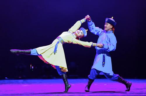 2020年11月1日,内蒙古民族艺术剧院歌舞团演员表演群舞《沙嘎·沙嘎》。