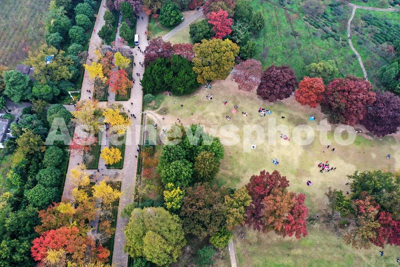 2020年11月1日,南京明孝陵石像路进入最佳秋色观赏季,吸引许多游人前来观赏。