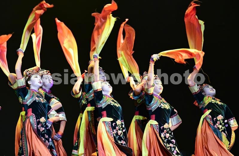 2020年11月1日,内蒙古通辽市科尔沁艺术职业学院演员表演群舞《阿日山呼日》。