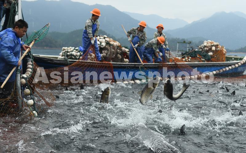 2020年11月1日,浙江省杭州市淳安县千岛湖许源大港渔场,上演秋季巨网捕鱼壮景,一网丰收了3万公斤有机鱼。巨网捕鱼是千岛湖有机鱼捕捞生产过程的最后一个环节,捕鱼过程通过拦网、刺网对鱼群的包围、截拦和驱赶,最后迫使被包围鱼群进入定置张网,从而达到集中捕鱼的一种捕捞方式。据了解,千岛湖一个月秋捕有机鱼已达100万公斤。