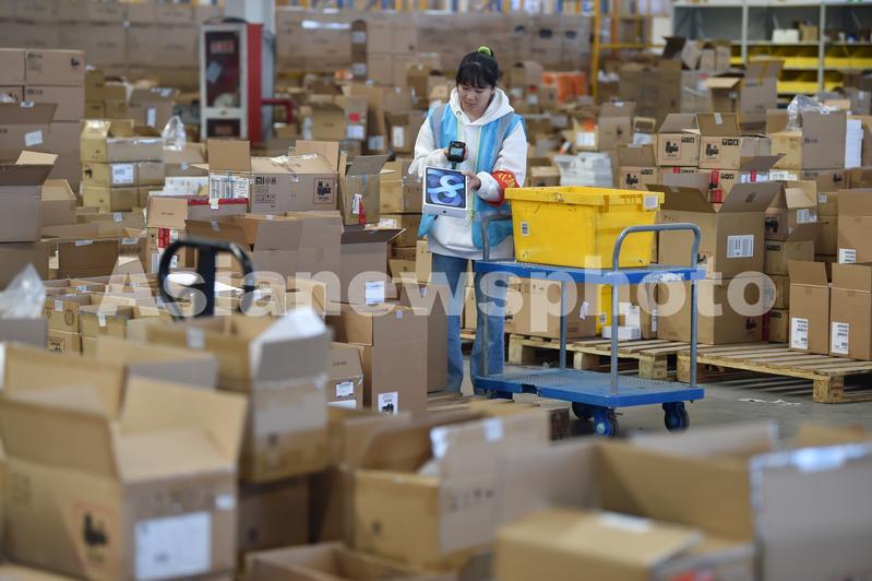 江苏南京:“双十一”快递量将达29亿件 物流仓库一片繁忙 查看组图