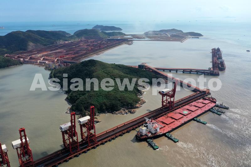 浙江舟山:40万吨级韩国矿石货船到港卸货 查看组图