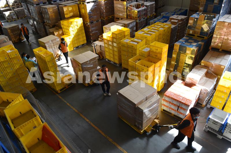 江苏南京:“双十一”快递量将达29亿件 物流仓库一片繁忙 查看组图