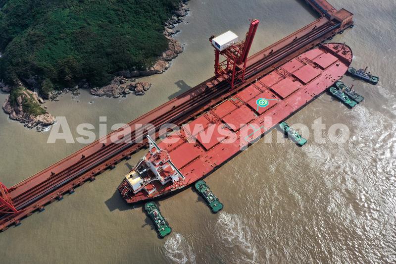 浙江舟山:40万吨级韩国矿石货船到港卸货 查看组图