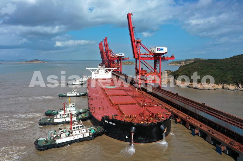 浙江舟山:40万吨级韩国矿石货船到港卸货 查看组图