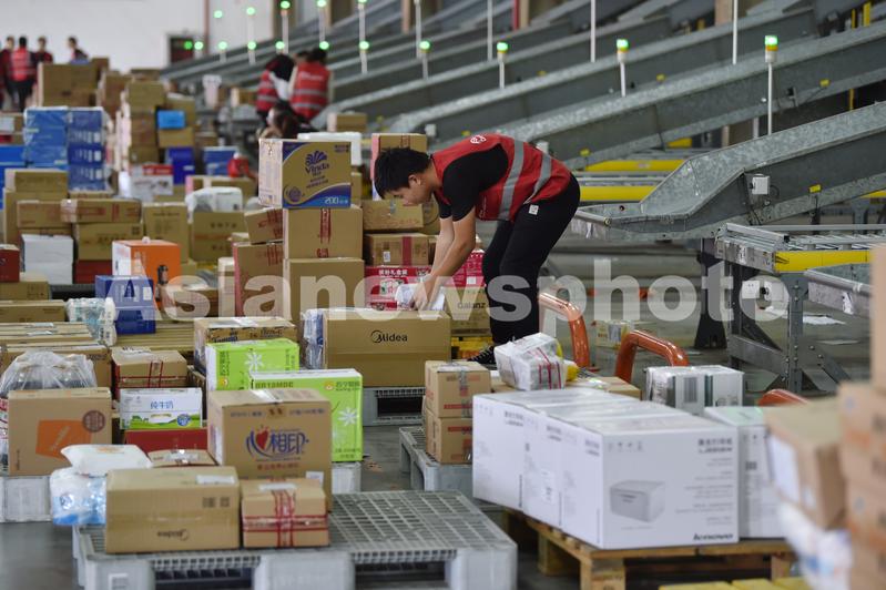 江苏南京:“双十一”快递量将达29亿件 物流仓库一片繁忙 查看组图