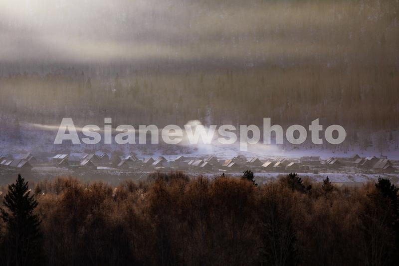 图片说明:2020年11月8日清晨,新疆喀纳斯禾木村,袅袅炊烟升起。