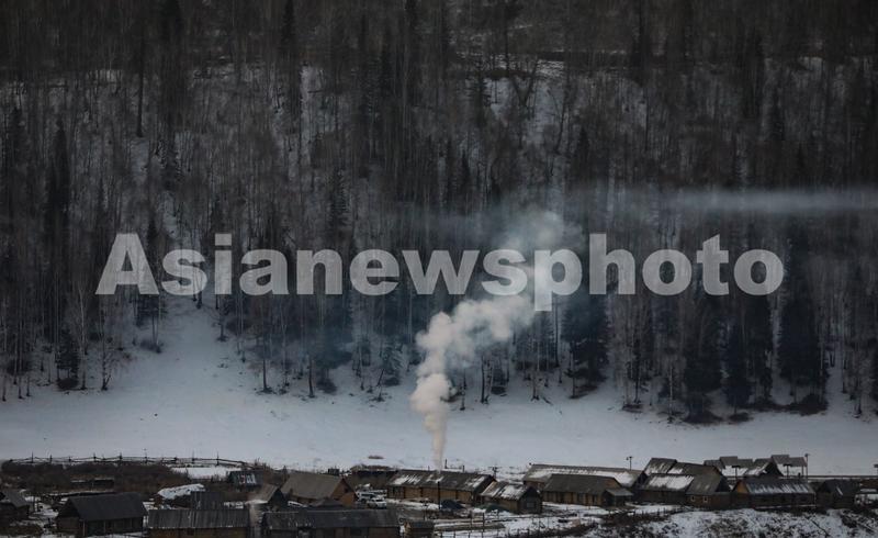 图片说明:2020年11月8日清晨,新疆喀纳斯禾木村,袅袅炊烟升起。