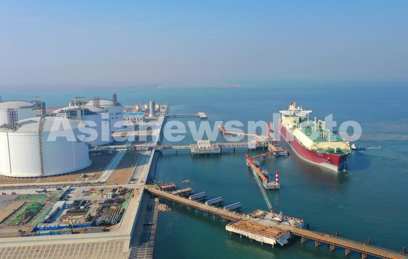 图片说明:2020年11月10日,天津LNG接收站接卸阿尔玛菲娅号LNG运输船。
