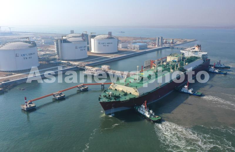 图片说明:2020年11月10日,来自卡塔尔的Q-MAX型LNG运输船阿尔玛菲娅号LNG运输船靠近天津LNG接收站。