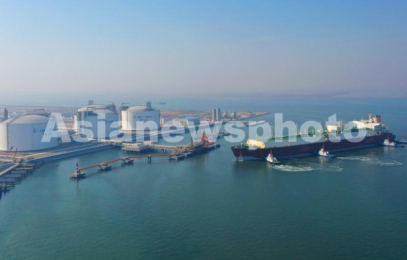 图片说明:2020年11月10日,来自卡塔尔的Q-MAX型LNG运输船阿尔玛菲娅号LNG运输船靠近天津LNG接收站。