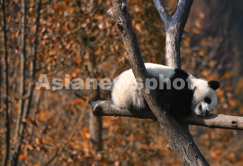 图片说明:11月11日,中国大熊猫保护研究中心卧龙神树坪基地,在树上休息的大熊猫宝宝。