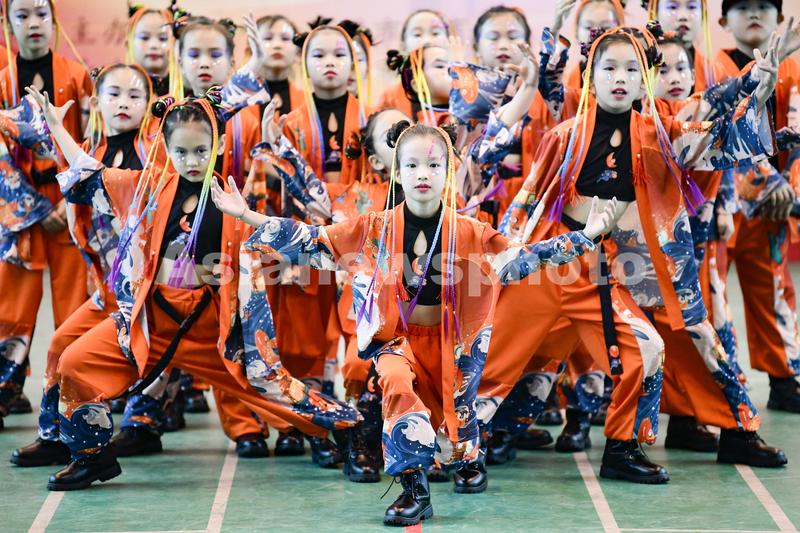 图片说明:2020年11月14日,呼和浩特市赛罕区南门外小学学生在啦啦操比赛中。
