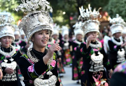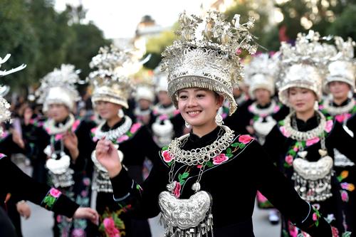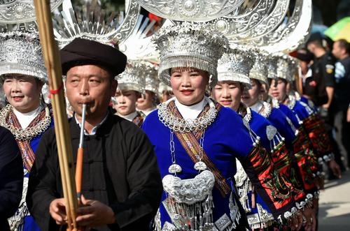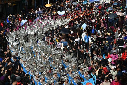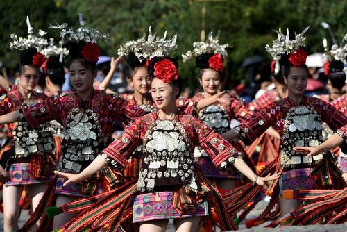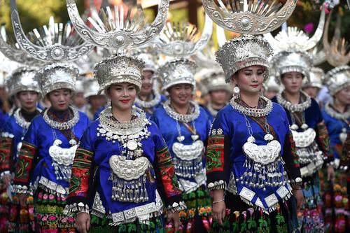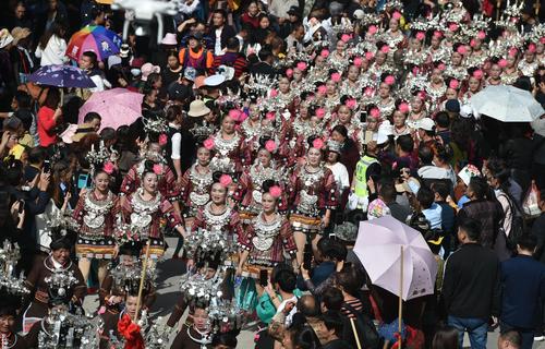 2020年11月19日,贵州省黔东南苗族侗族自治州雷山县的13万苗族同胞迎来了一年一度的苗年。苗族同胞通过盛装巡游,展示苗族的歌舞、苗绣、医药和银饰锻造技艺等非遗文化。苗年是苗家人庆祝丰收、感恩祭祖最隆重的民族节日。