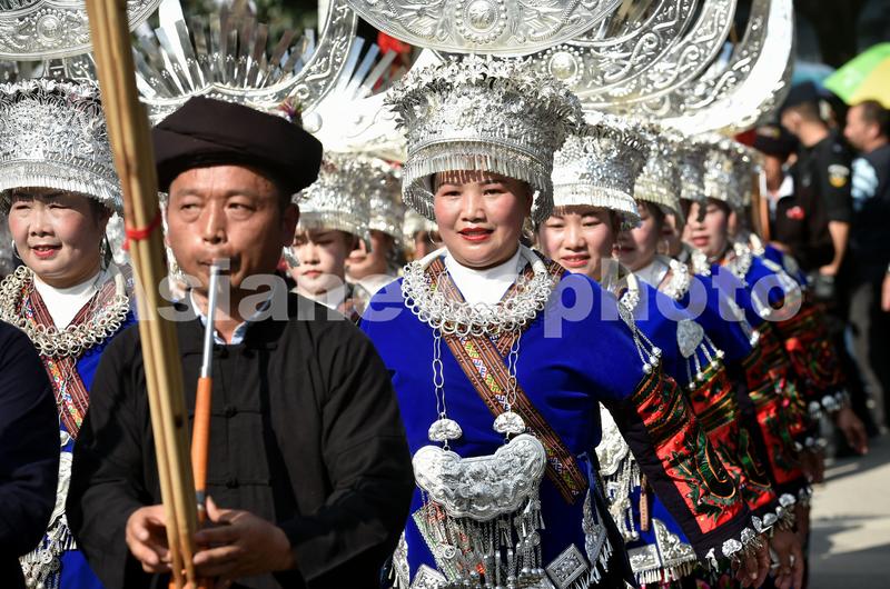 2020年11月19日,在贵州省雷山县,苗族同胞盛装巡游欢庆苗年。