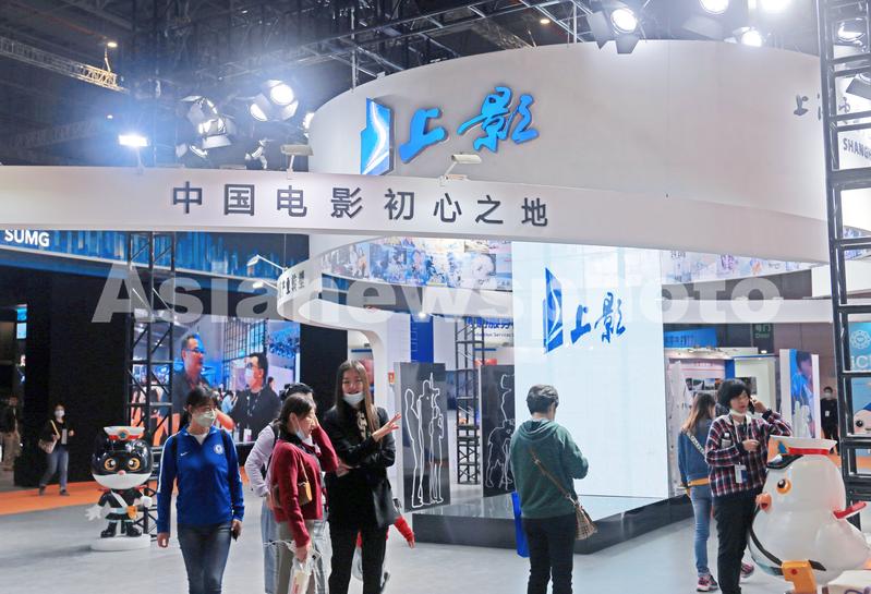 图片说明:2020年11月19日,上海,2020长三角国际文化产业博览会上,观众参观上海电影制片厂展区。