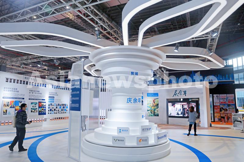图片说明:2020年11月19日,上海,2020长三角国际文化产业博览会上,观众在阅文集团展区参观。